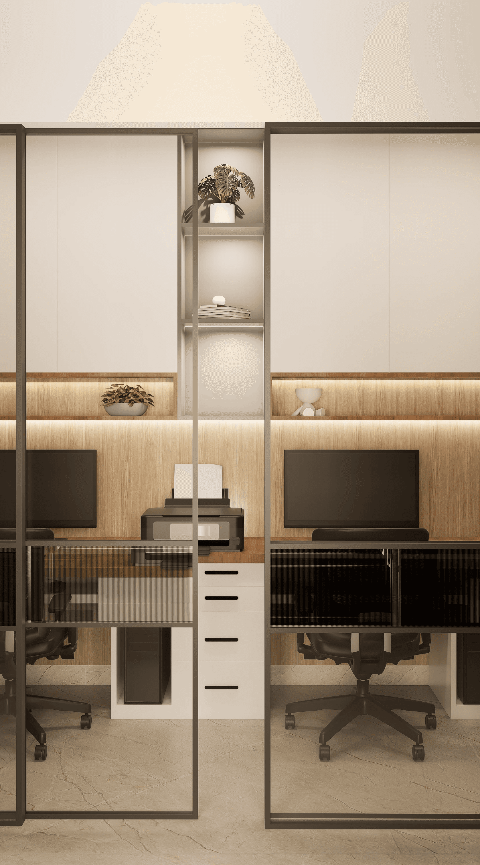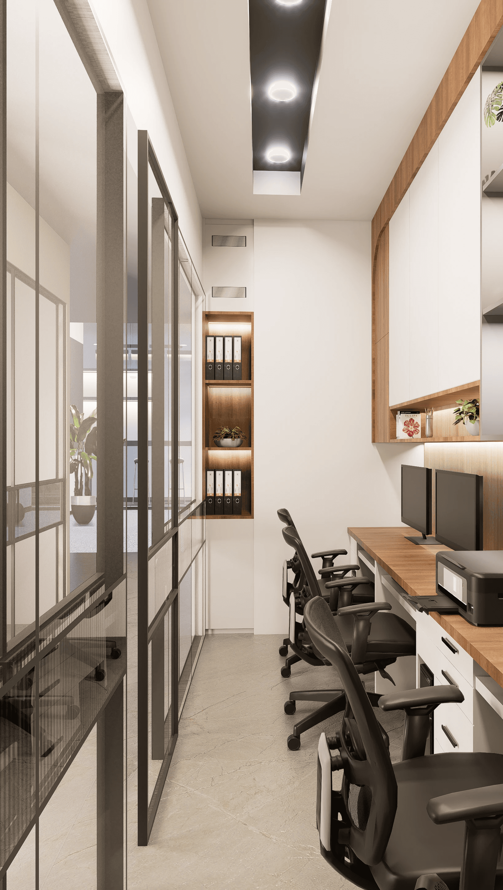 An ongoing marketing office project blending warm wood textures, modern minimalism, and functional workspaces designed for collaboration and creativity.